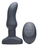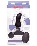 Our curved Model M Rimmer is now available in a slimmer size for those that prefer less girth! Shaped to target the P-spot or, in women, to reach towards the G-spot, this anal massager also features a bulging bulb for your inner pleasure. Better than your average butt plug, this revolutionary sex toy will actually massage the opening to your hole with rotating beads and a spiral texture along its stem, providing a sensation similar to a rim job! Play with 3 speeds and 2 functions of swirling satisfaction around your sphincter. You will also be treated to 3 speeds and 5 patterns of vibration as the plug thrums inside you. An optional remote control can make playing on your own easier, but it can also provide wireless fun with a partner. Light up buttons on the remote and the plug make them easy to see in the dark. Made of premium silicone, this exciting tool is non-porous, phthalate-free, and waterproof for a body-safe experience and thorough sanitization with soap and water. Measurements: 5.5 inches in total length, 4.6 inches insertable, 1.5 inches in diameter. Remote control is 3.25 inches in length, 1.75 inches in width. Material: Silicone, ABS plastic Color: Black Note: Instructions included. Charges magnetically via USB. CR2032 Lithium ion battery cell included for remote control