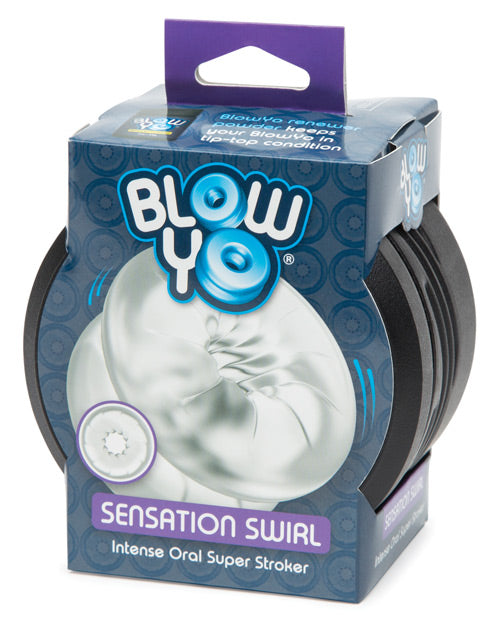 The Sensation Swirl texture inside your BlowYo engulfs your erection to create an incredible sucking feeling. Intuitive and easy to use, you simply hold BlowYo between the two rings, and grip or twist more firmly whenever you want a tighter sensation.