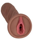 Deep, double textured love tunnel for intense stroking action.Realistic, lifelike entry feels just like the real thing.Comfort grip exterior with narrow anal tunnel for a tight sensation.Open-ended design makes clean up a breeze Use only with water- or silicone-based lubricant Proudly made in the USA 10 Function Vibrating Egg included Materials: TPR Dimensions: 7.5" x 7.5" x 3.5"