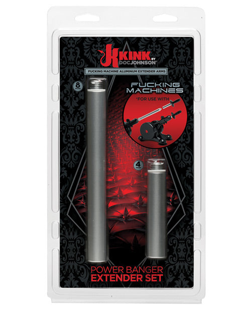 Get more out of your Power Banger. This extender set in sturdy aluminum is Vac-U-Lock compatible and can be customized for three different extended lengths: 4”, 8”, or 12”. Get Longer, Deeper Strokes from Your Power Banger . Two Pieces Create Three Length Options (4”, 8”, and 12”) . Easy Screw-On Assembly . Includes Complete Care and Usage Instructions